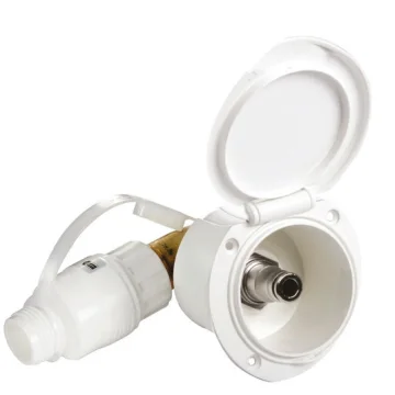 Yuvarlak tipte, beyaz renkli ve basınç düşürücü özellikli bu tatlı su girişi, 1/2" rakor bağlantısı, Ø 66 mm çapı ve 116 mm derinliği ile sisteminizdeki su giriş basıncını 1,5 bar seviyesine kadar düşürmek üzere tasarlanmıştır.