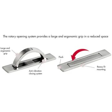 Döner açma sistemi, daha az alanda geniş ve ergonomik bir tutuş sağlar. Gömme montaj. Titreşim önleyici kapatma sistemi ile donatılmıştır.
