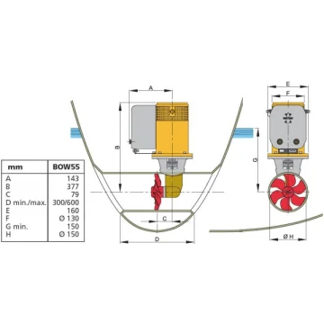 Vetus baş manevra pervaneleri Vetus baş manevra pervanesi, 55 kgf, 12V