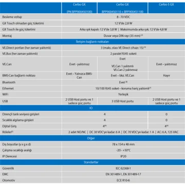 BMS-Can veri yolu portlarına, tank ve sıcaklık bağlantılarına ihtiyaç duymayan sistemler için uygun maliyetli Cerbo-S GX’in de mevcut olduğu unutulmamalıdır.