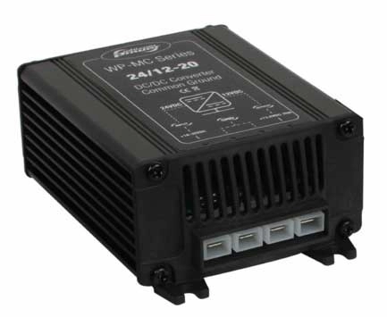 Whisper Power 24/12-20 DC/DC konvertör, 24 VDC giriş voltajı ile 13,8 VDC nominal çıkış voltajı sunan, yüksek verimlilik değerine sahip bir modeldir.